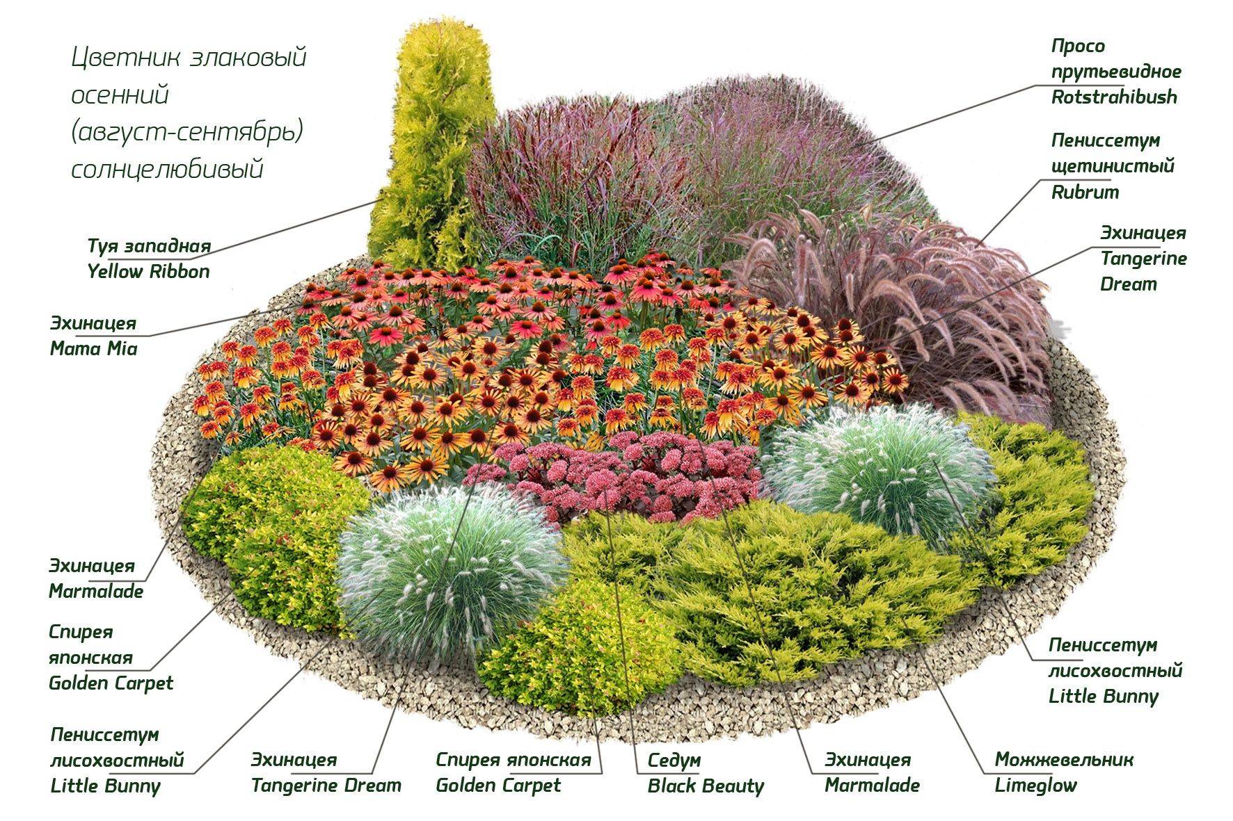 Посмотрите, какими бывают клумбы непрерывного цветения из многолетников на схемах — так вы сможете разобраться, какой дизайн сделать, а также какие растения уживутся в саду.