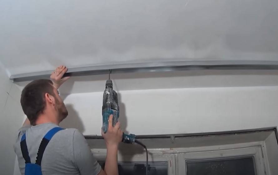Начинают с разметки. Сверяясь с чертежом, обозначают высоту всей подвесной конструкции и отступ от окна. Если расстояние между черновым перекрытием и чистовым потолком значительное (30 см и больше), дно ниши опускают и зашивают гипсокартоном. Иначе получится слишком глубокое пространство, в котором неудобно работать.
