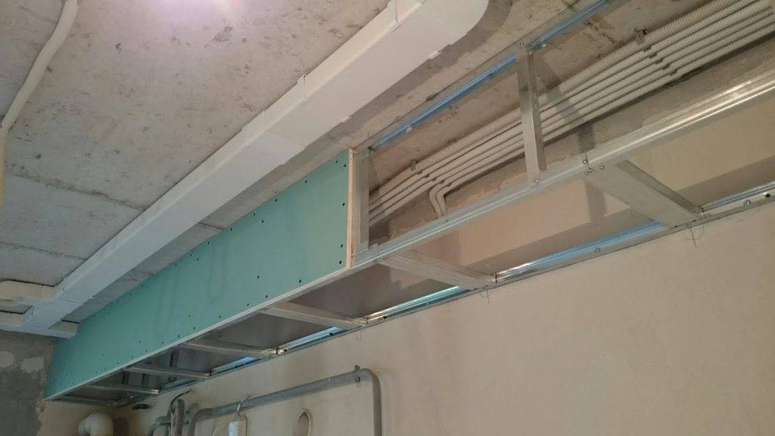 Монтаж короба из гипсокартона на потолке выполняется следующим образом: