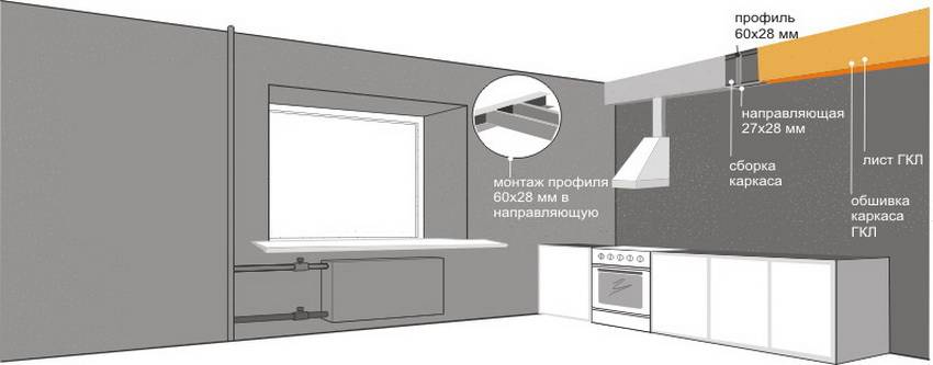 Конструкция второго уровня поможет не только спрятать рукав, но и надежно закрепить его на участке между вентиляцией и вытяжкой.