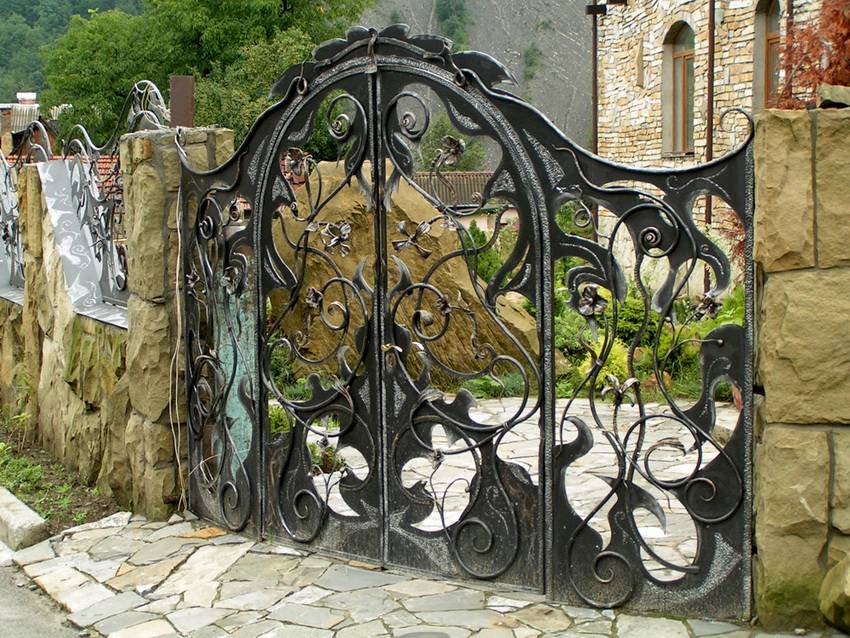 Выбирая дизайн и орнамент, ориентируются на стиль домостроения. Чаще всего устанавливаются откатные, распашные и гаражные ворота. Достоинства кованых конструкций: