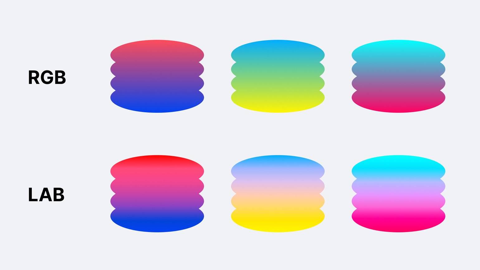 Отдельное преимущество LAB — возможности для создания чистых градиентов между насыщенными цветами. Красивые градиенты важны не только в проектировании интерфейсов и дизайн-макетов, но и в информационном дизайне.