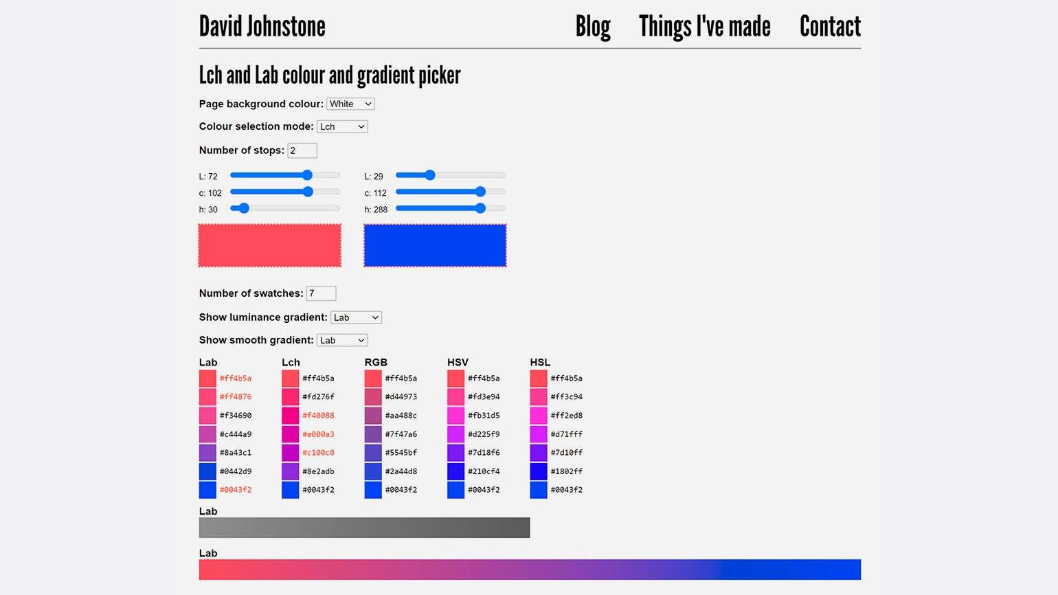 Интерфейс Lch and Lab colour and gradient picker. Иллюстрация: David Johnstone