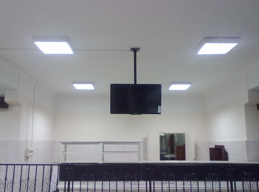 Зачастую телевизор закрепляют на потолке в помещениях, где собирается много людей