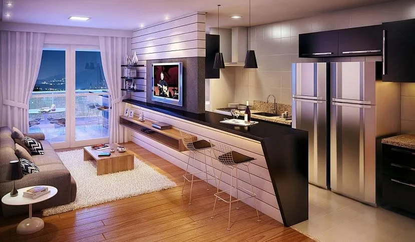 Гостиная, частично совмещенная с кухнейИсточник moydomik.net