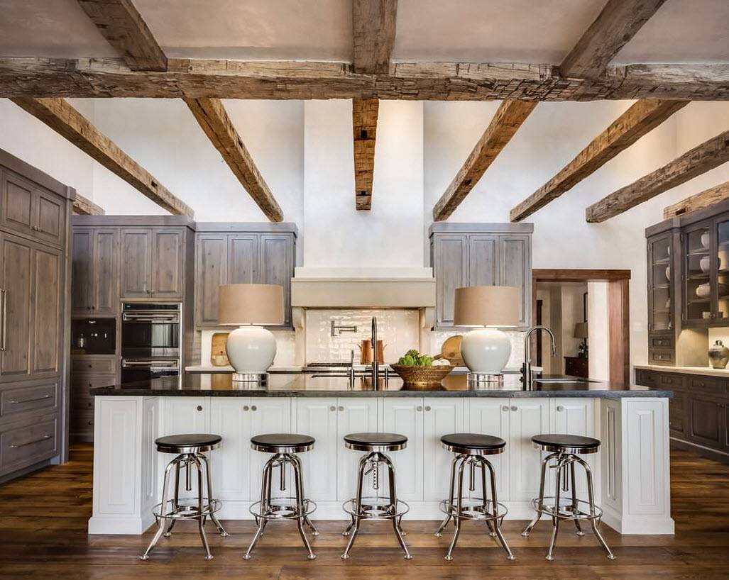 Посмотрите, как стильно и эффектно на приведенных фото выглядят кухни в стиле кантри. Несложно заметить, что в каждом интерьере присутствует дерево: лакированное, крашенное, необработанное. Оно замечательно вписывается в данное направление, подчеркивает его самобытность и уникальность.