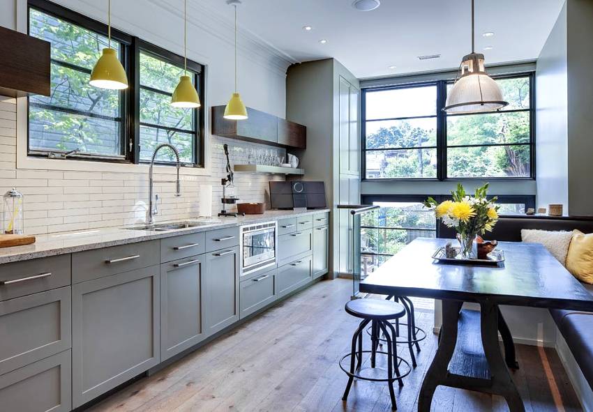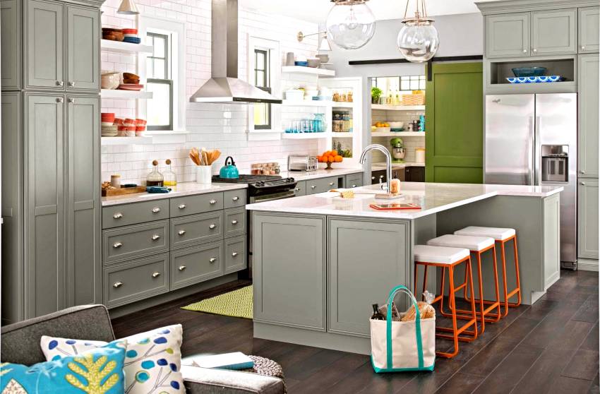 Угадайте, с какими другими цветами в интерьере кухни сочетается серый: