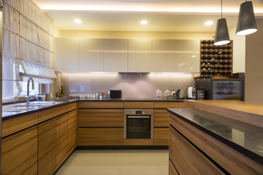 Оптимальным вариантом станет комбинация цветов. Так светлые фасады кухонного гарнитура будут хорошо сочетаться с темной столешницей. Это не только эстетически красиво, но и функционально грамотно.
