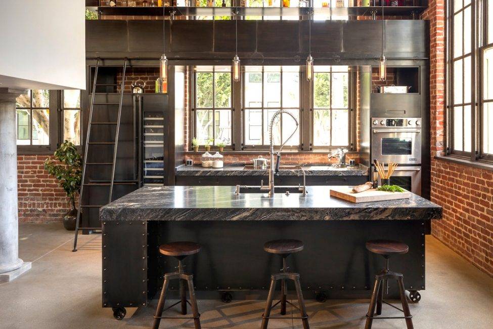 При подготовке дизайн-проекта для кухни под «loft» важно найти гармоничный баланс между натуральными и ультрасовременными материалами. Мебель надо подбирать непритязательную без изысков, но удобную и современную