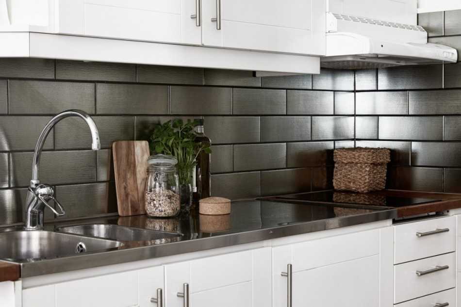 Если кухня маленькая, выбирайте светло-серые оттенки. В больших пространствах можно экспериментировать с темными тонами при условии, что помещение имеет достаточную естественную освещенность.