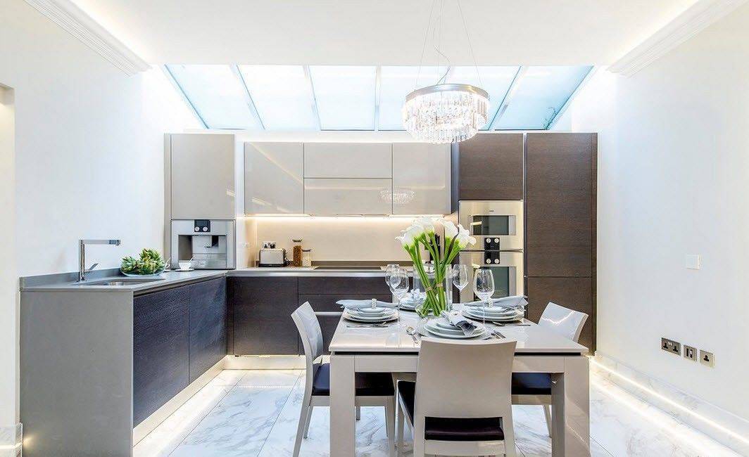 Важно! Белый цвет в таком оформлении интерьера должен быть основным и служить фоном для элементов венге. К примеру, на кухне выполняют белые поверхности стен потолка и пола с контрастирующими на их фоне гарнитуром и обеденной группой