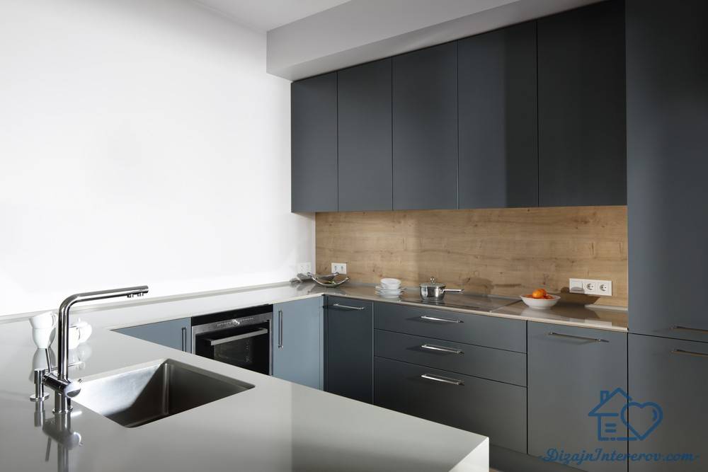 Угловой гарнитур с фактурными фасадами Источник aviarydecor.com