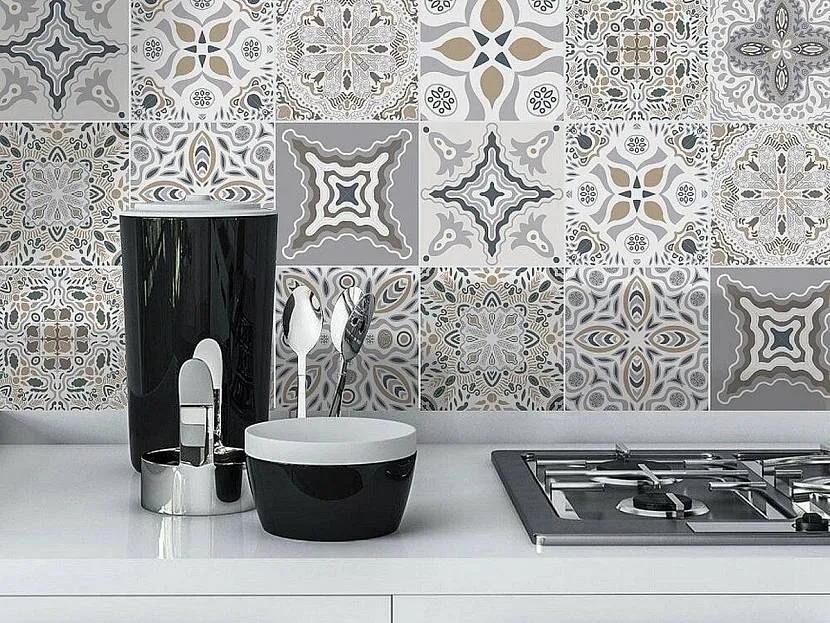 Если надо быстро обновить интерьер кухни или ванной, то лучше использовать отделку на клейкой основе. Простой, недорогой вариант позволит легко изменить оформление керамики