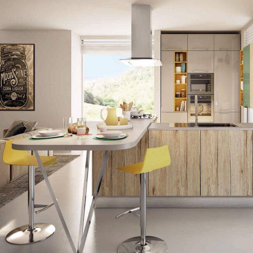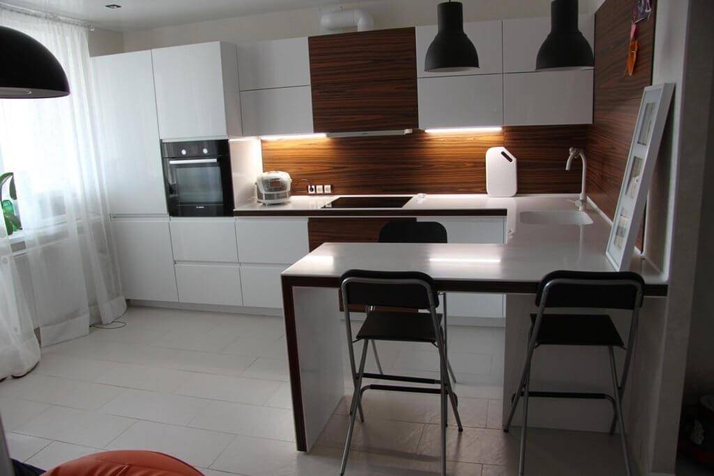 Фото 5. Пример совмещенной барной стойки в интерьере небольшой кухни.