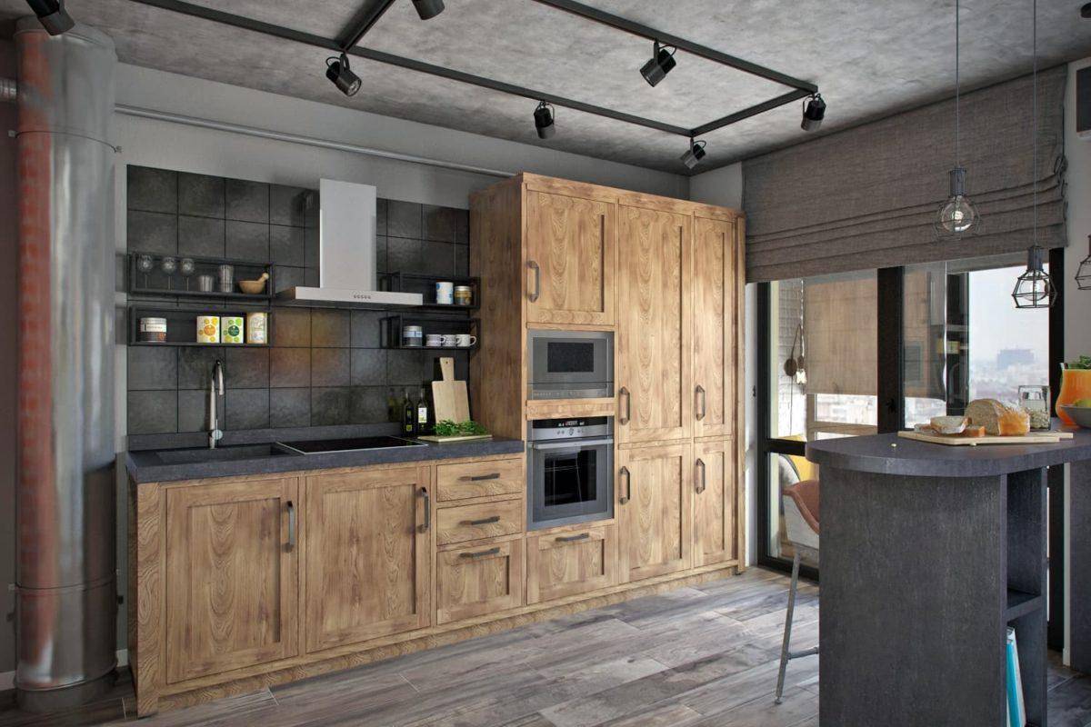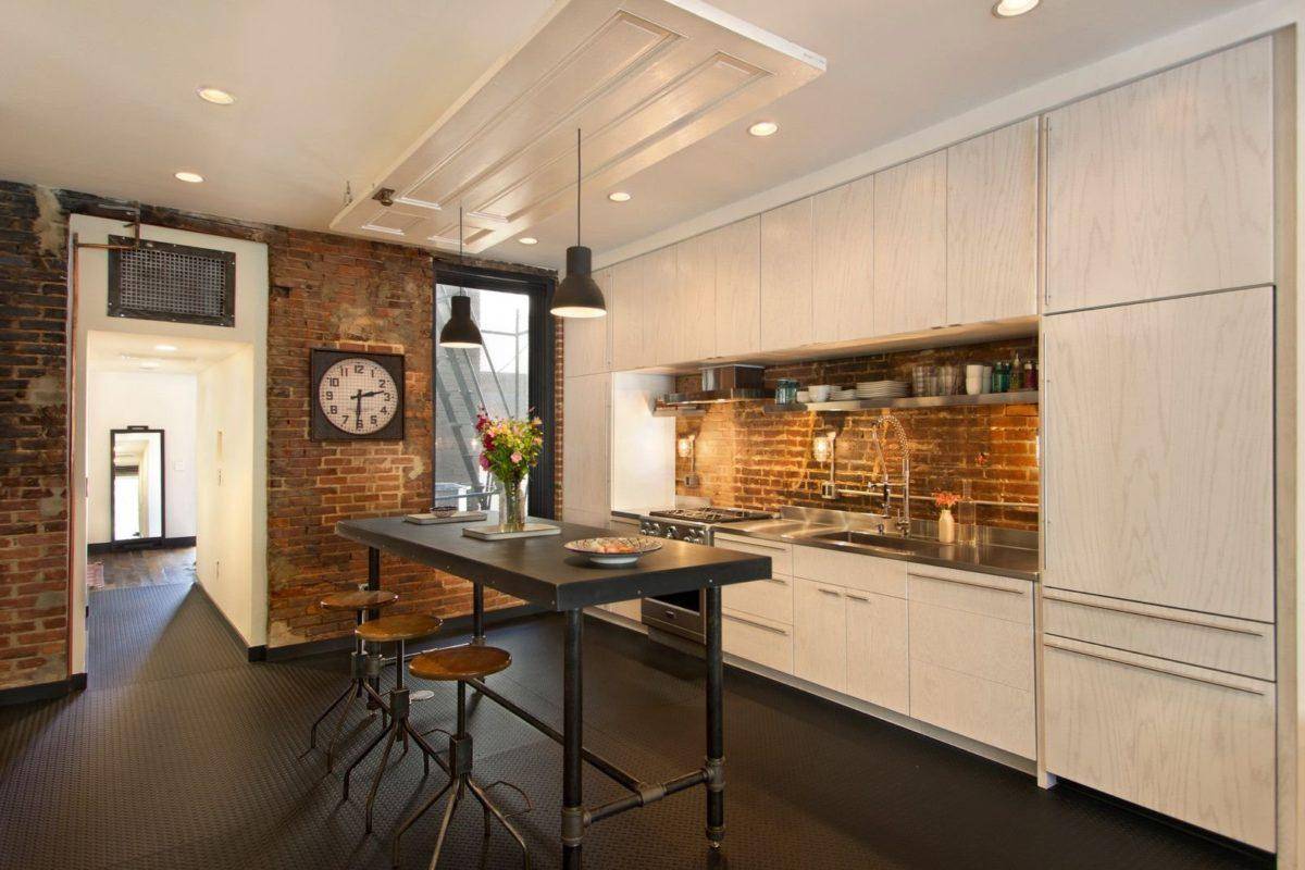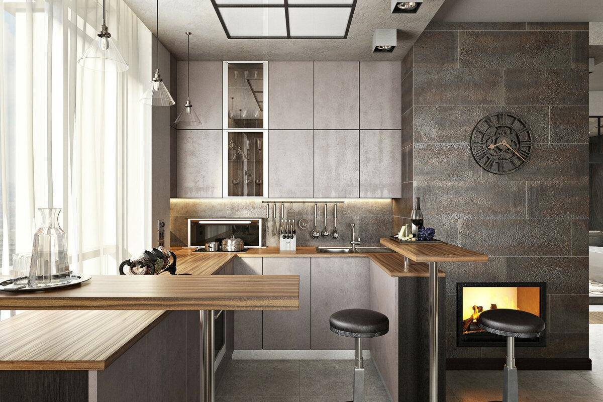 Кухня в стиле лофт может не иметь чёткого разграничения на обеденную и рабочую зоны (в тесном помещении стоит рассмотреть такой вариант, если он не будет дискомфортным для хозяев).