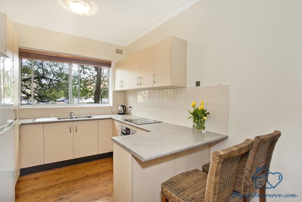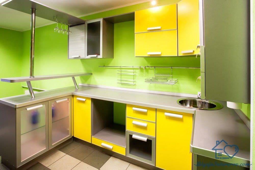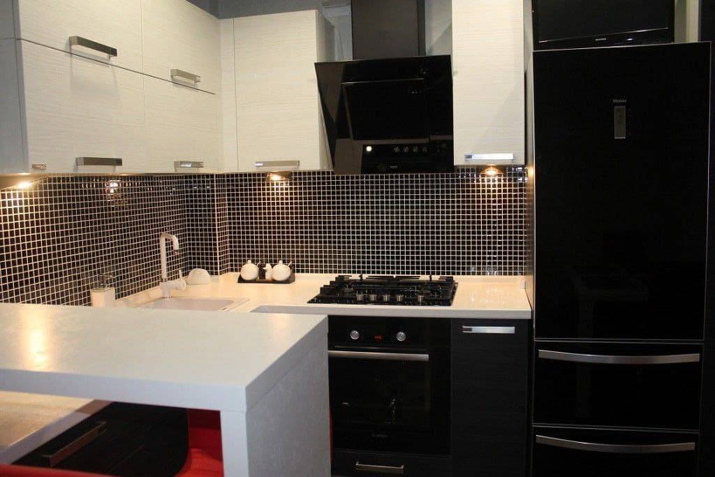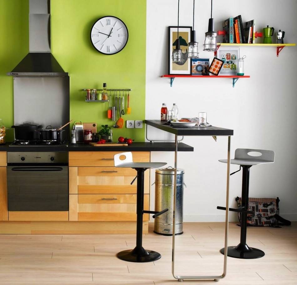 - Маленькая площадь кухни не позволит установить и барную стойку, и обеденный стол.