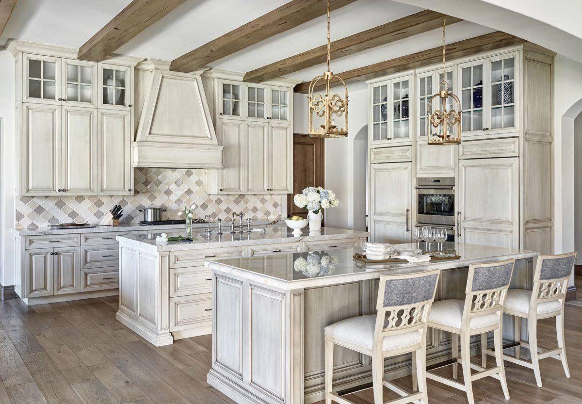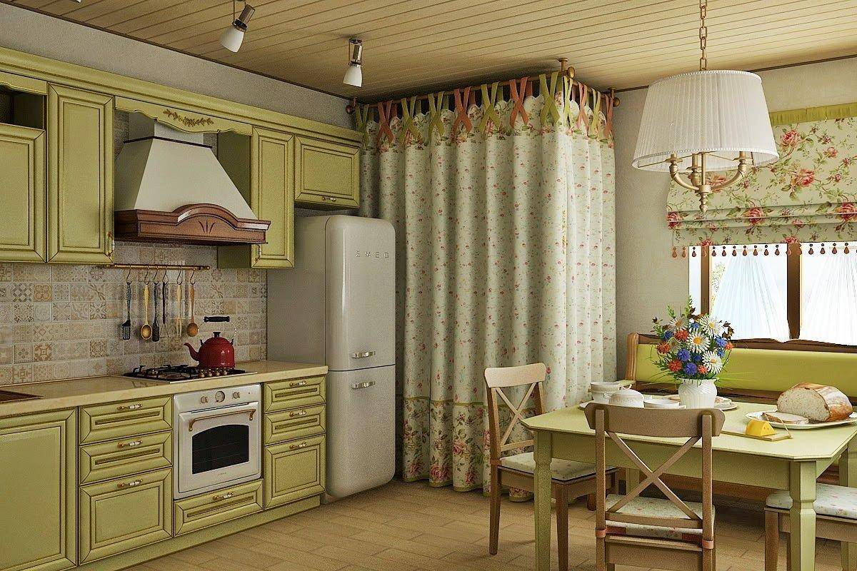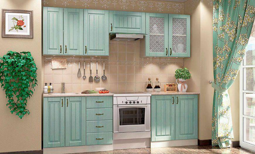 В провансе широко используются светлые и пастельные оттенки: слоновая кость, салатовый, бежевый, светлые нежные тона зелёно-голубой и сиреневой гаммы. Уместно использование мебели с патиной. Технику лучше скрывать фасадами шкафов.