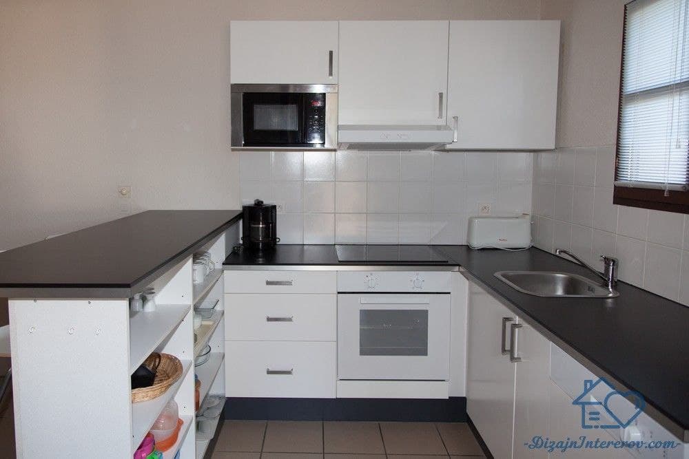 Недостатков при выборе прямой планировки всего два, да и то очень спорных. Первым является нехватка площади. Кухни бывают настолько маленькими, что в них сложно определить хотя бы одну сплошную стену для установки гарнитура. Вторым недостатком является небольшое рабочее пространство непосредственно для приготовления блюд. Люди, привыкшие часто и много готовить, могут просто приобрести кухню большей длины. А для любителей проводить за готовкой минимальное количество времени этот недостаток автоматически превращается в достоинство.
