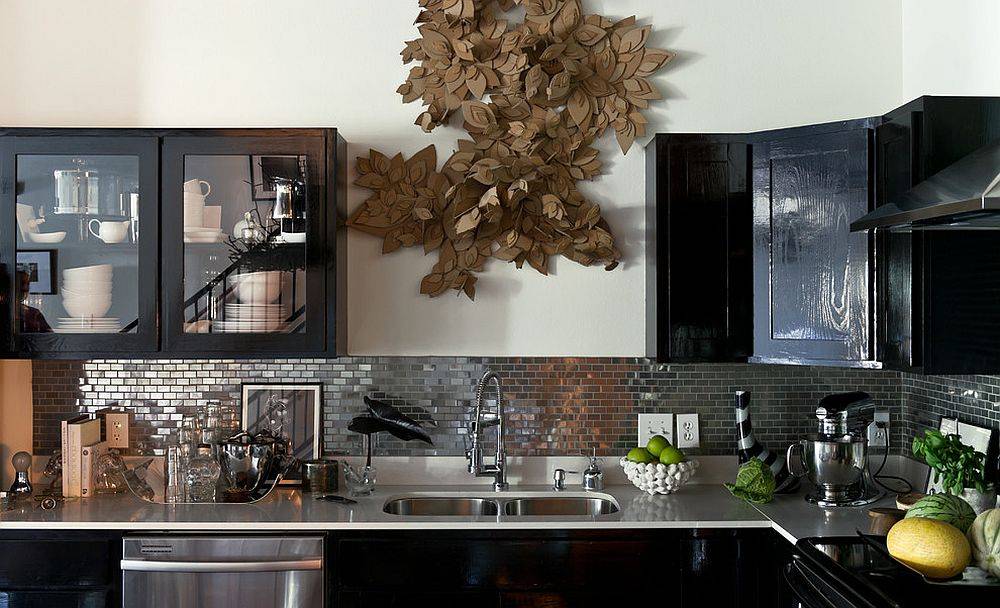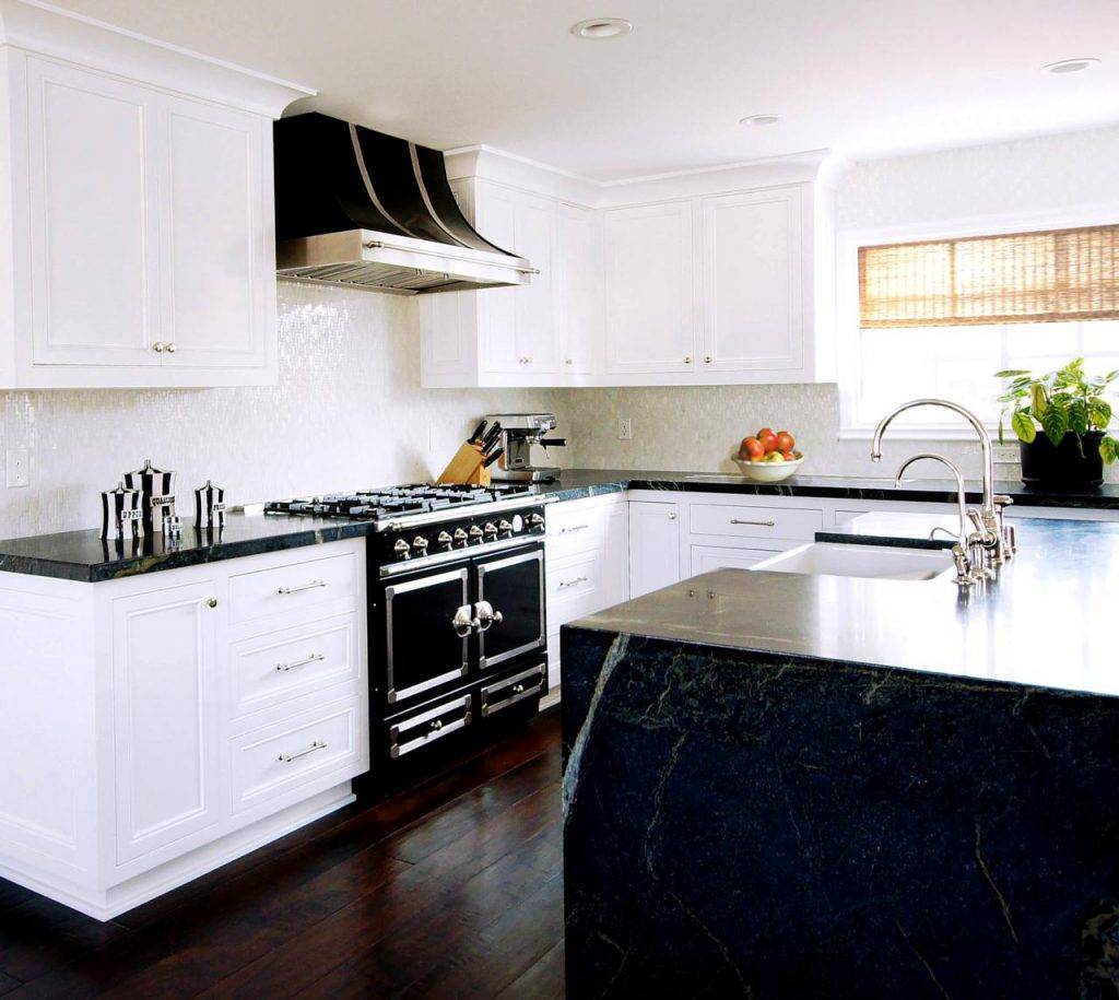 Можно не бояться контрастных цветовых решений. Скажем, популярные сегодня чёрно-белые ансамбли, доставшиеся нам в наследство от ар-деко, в просторных кухнях смотрятся свежо и элегантно.
