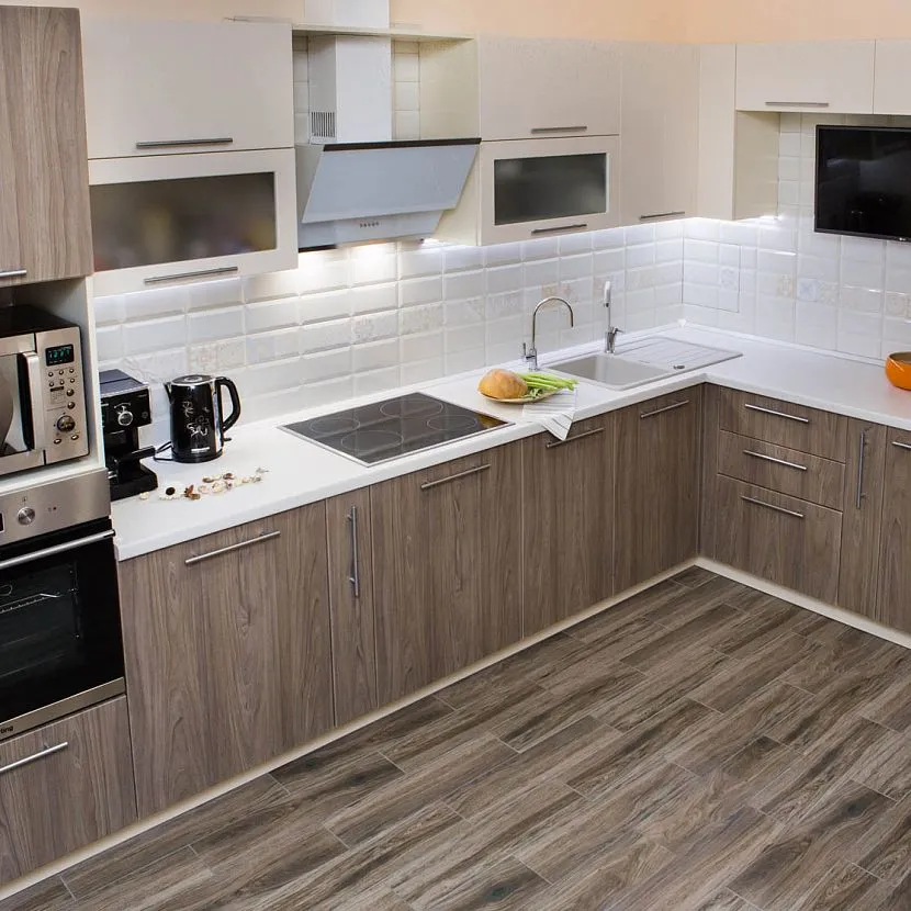 Для Г-образной кухни характерно расположение гарнитура вдоль перпендикулярных стен. Здесь нет четкого правила по выбору цветовой гаммы, но должно учитываться имеющееся освещение и площадь комнаты. Наиболее часто кухни буквой Г выполняют в следующих стилевых решениях: