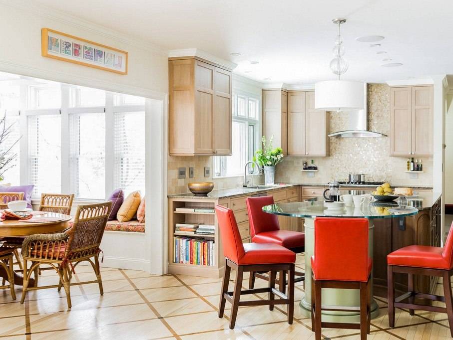 Оптимальная площадь кухни для размещения дополнительного стола – от 25 квадратных метров. Просторное помещение позволяет выбрать любую модель острова. Для кухонь размером 15-20 квадратных метров подойдут столики, площадь которых – 3-6 квадратных метров. Установка острова удобна для зонирования совмещенных помещений.