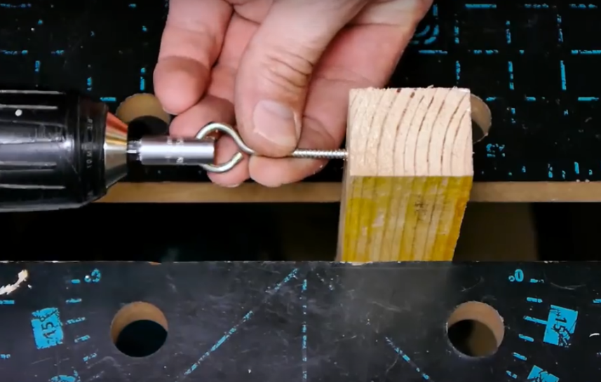 ФОТО: YouTube.comВставьте гвоздь, загнутый крюком, в шуруповёрт и подцепите им оба конца петли из проволоки