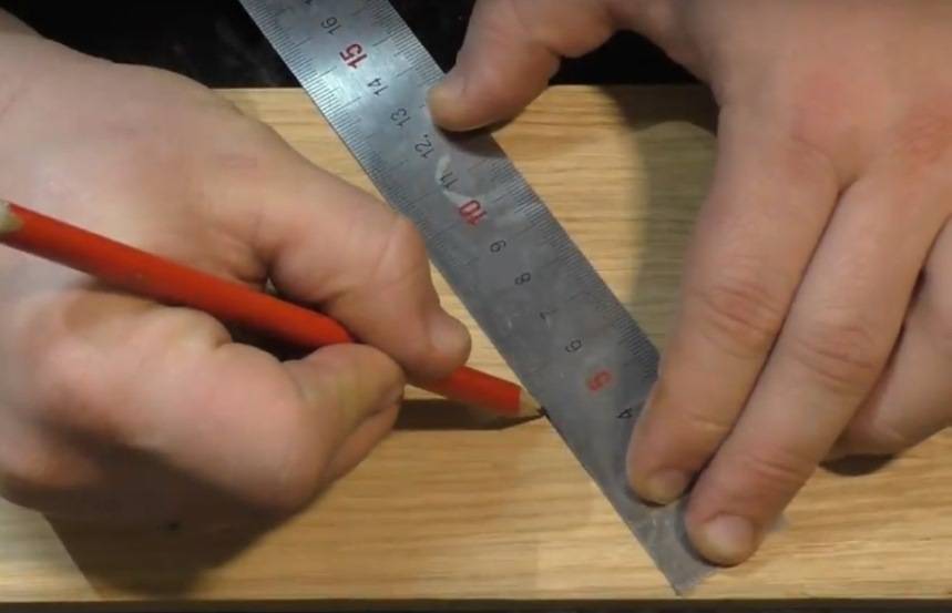 Сделать это можно, не мучая себя математическими расчетами и их точным отображением при разметке. Чтобы произвести очень точное деление, достаточно взять достаточно длинную линейку и приложить ее к детали так, чтобы один конец совпадал с краем, а напротив второго края детали оказалось число, легко поддающееся делению, например, 15. Напротив делений «5» и «10» линейки следует поставить отметки на поверхности детали. Такую же операцию следует сделать и на другом ее конце.