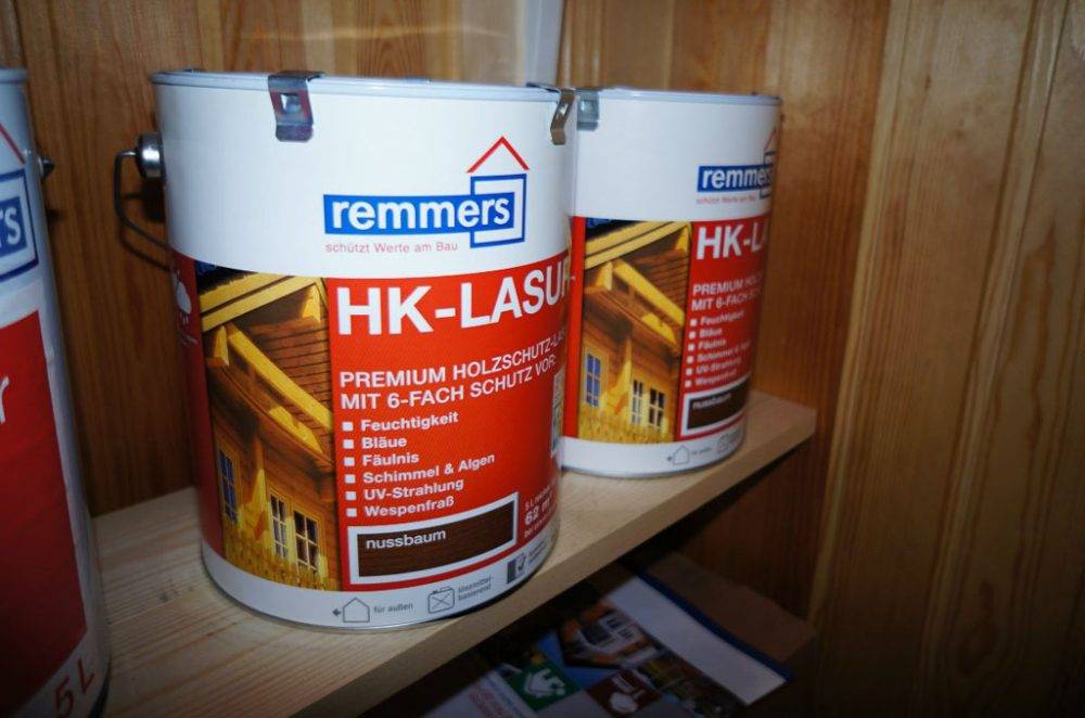 - ДЕКОРАТИВНАЯ ЛАЗУРЬ (HOLZVEREDLUNG) – усовершенствованная версия предыдущей краски. Главное её отличие – глянец. Краска обладает, благодаря этому более насыщенным оттенком, подчеркивающем текстуру дерева в большей степени.