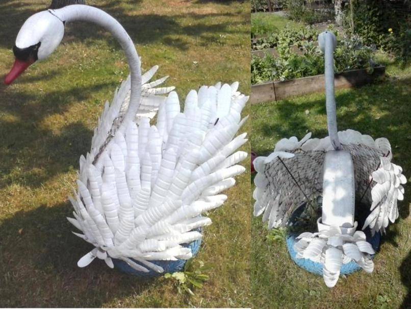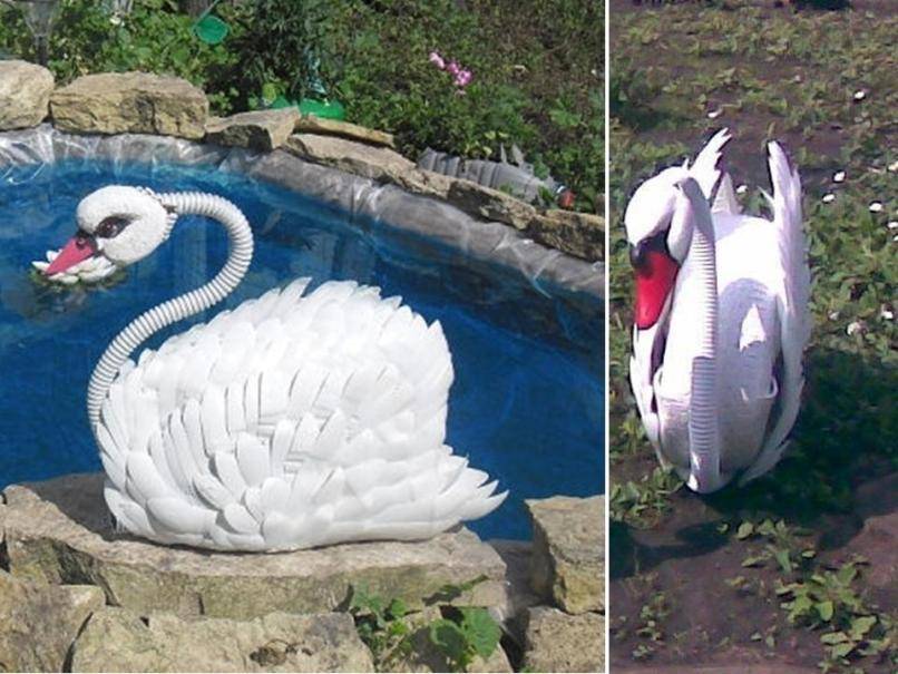 Лебеди из пластмассовых бутылок в дизайне сада или участка