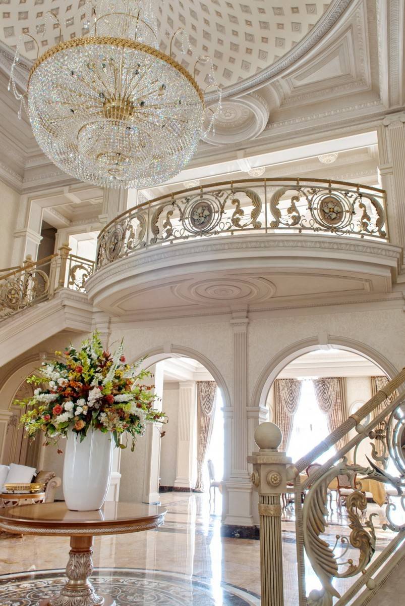 Потолочная плоскость, украшенная лепными розами, лилиями, лотосами или различными ветвями, придает комнате воздушности и элегантности.