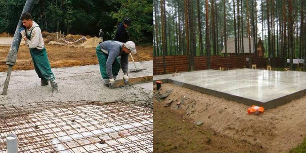 Для строительства дома на пылеватом и мелком песке из-за крайней неустойчивости пластов необходимо создать максимально прочную основу. В таких случаях допустимо возведение плиточного фундамента. Для этого снимают плодородный слой земли и отливают бетонную плиту, масштабы которой чуть больше площади планируемого здания. Конструкция не разрушается под воздействием сезонных изменений в почве, так как такой тип основания способен перемещаться вместе с грунтом, поэтому его называют плавающим фундаментом.