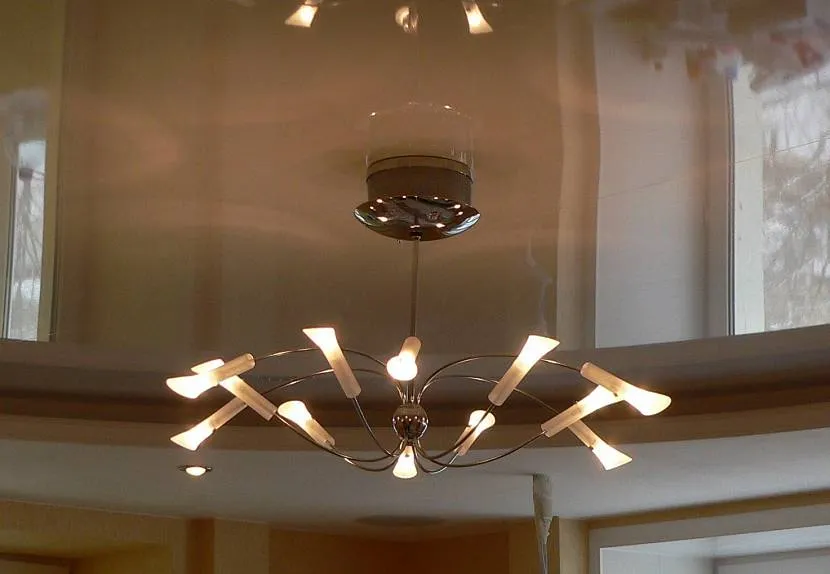 Сложнее дело обстоит с глянцевыми потолками. Дело не только в том, что такая поверхность обладает хорошими отражательными свойствами, что осложняет подбор люстры.