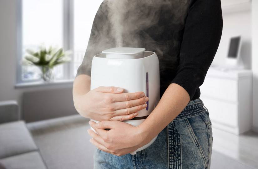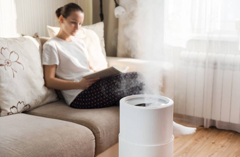 - Помните про расстояние от пола. Для настольных моделей оно должно составлять 50–100 см. Чем выше вы поставите увлажнитель, тем равномерней опустится пар.