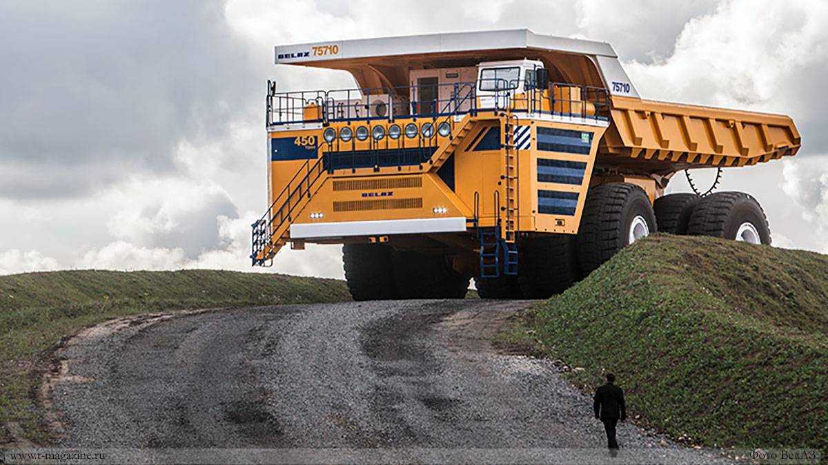 Белаз 75710 не только самый большой, но и самый грузоподъемный автомобиль – он способен перевозить около 450 тонн груза за один рейс.