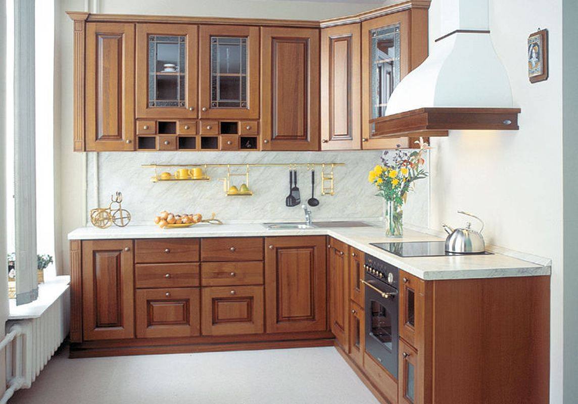 при этом в маленьких помещениях модульный гарнитур не всегда способен максимально эффективно задействовать каждый сантиметр пространства, что важно на небольшой кухне, например, в хрущевке;