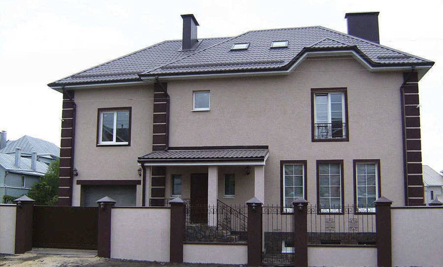 Штукатурка может быть любого цвета и оттенка, прекрасно сочетается с любыми материалами и смотрится очень красиво, поэтому с ее помощью часто создают мокрый фасад.