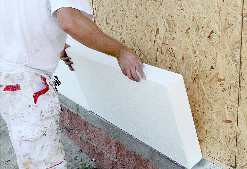 После нанесения клея плиту утеплителя прижимают к стене и простукивают. Первый ряд укладывают вплотную к стартовому. Каждый последующий крепят так, чтобы стыки между плитами были “вразбежку”, по аналогии с кирпичной кладкой. При этом ровность рядов проверяют с помощью строительного уровня.