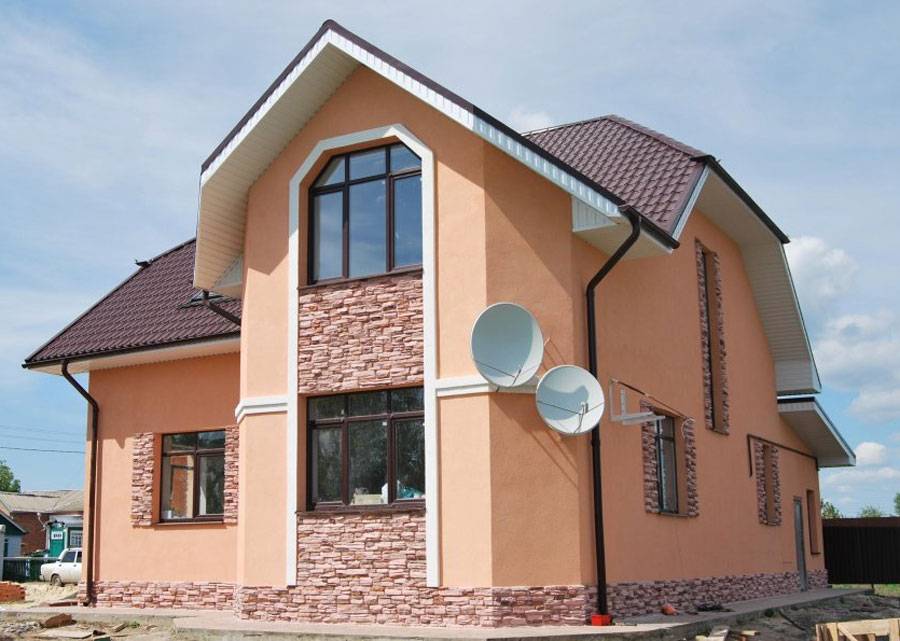 Как видите, даже в таком варианте как мокрый фасад можно применять виниловый сайдинг, пусть и в комбинированном виде.