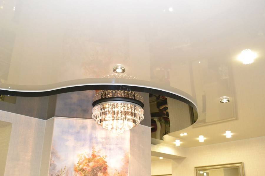 Прекрасный вариант для помещений небольшого размера. Такой потолок поможет разделить пространство на зоны. Также, с его помощью можно скомбинировать несколько цветов. Глянцевое полотно обладает светоотражающими свойствами, поэтому потребуется меньше осветительных приборов.