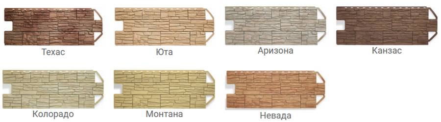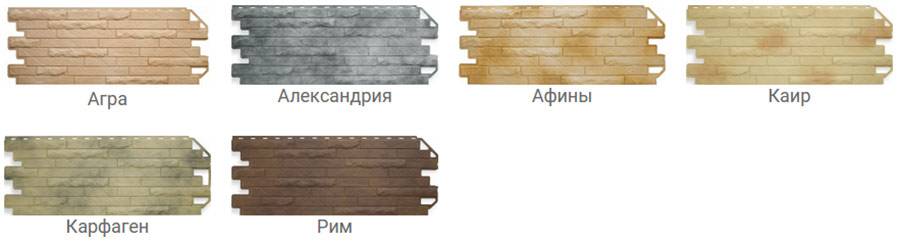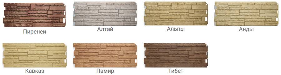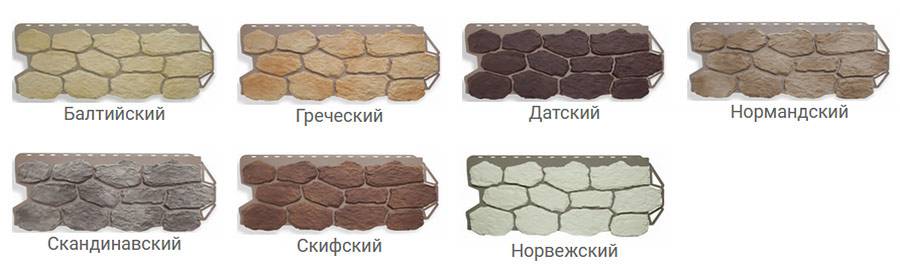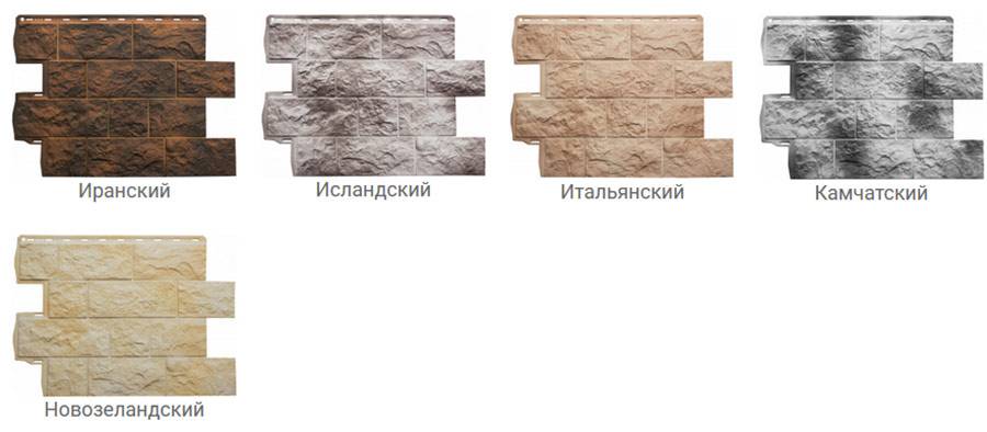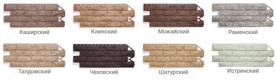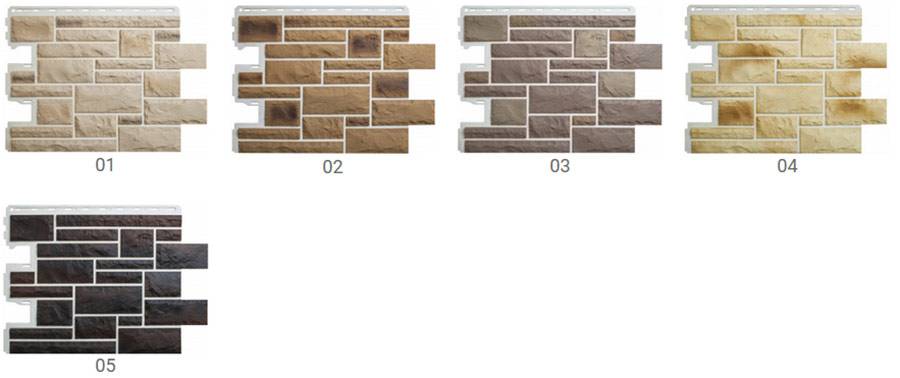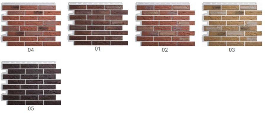 В ассортименте имеется большое количество вариантов, имитирующих натуральные материалы — от гладкого облицовочного кирпича до старого неровного, дикого бутового камня и гранита.