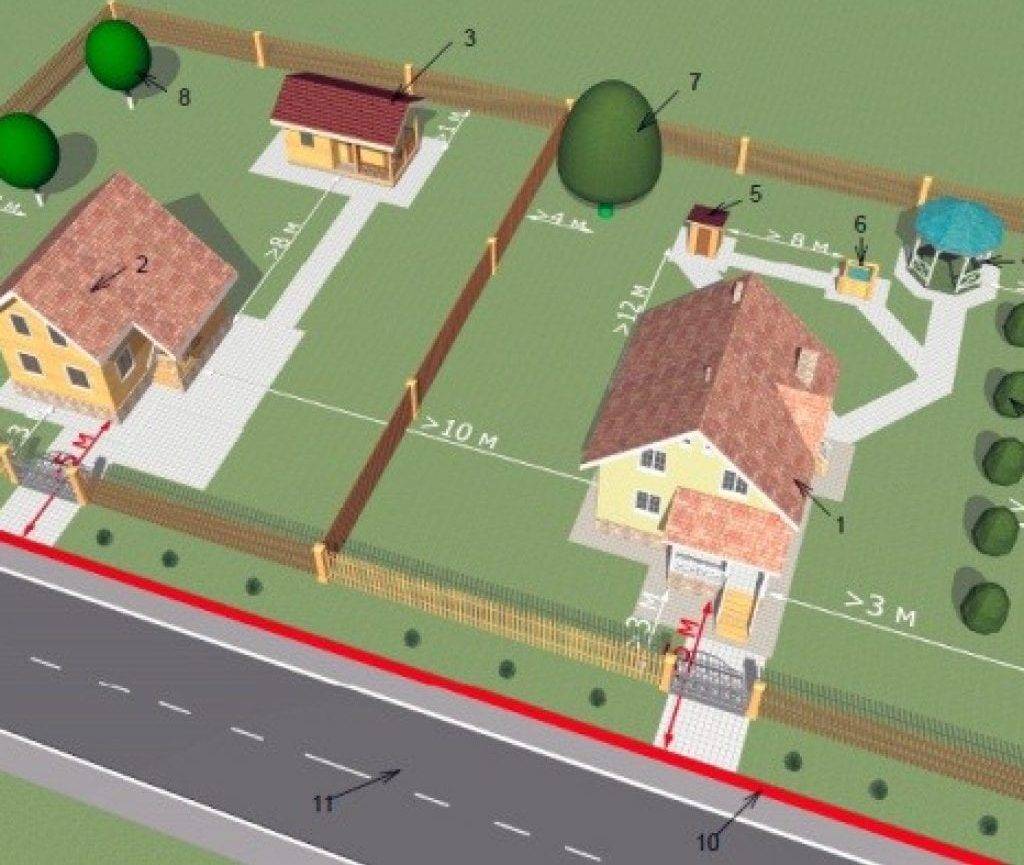 | От ограждения до соседского дома | 3 м | Данный параметр можно изменить, если доказать обоснованность корректировок. Например, если соседский дом стоит близко к участку, то расстояние можно уменьшить. |