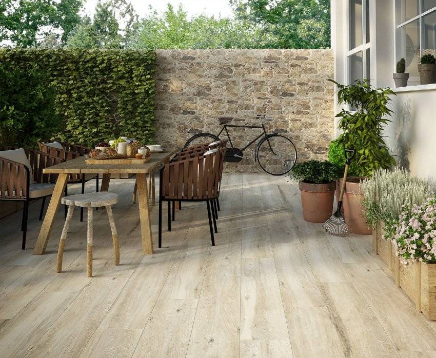 Благодаря повышенной износостойкости и прочности, плитку часто используют как покрытие на открытых террасах