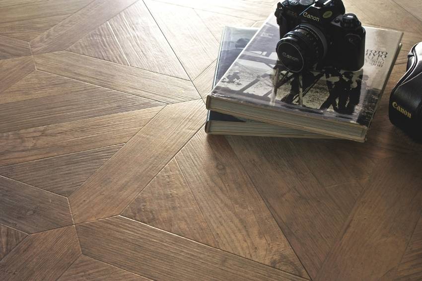 Очень востребованным остается дизайн «рустик» и «мозаика». При оформлении основания таким образом поверхность выглядит, как целый паркетный набор, который якобы был собран из множества плашек, различающихся по оттенку. Рисунок у подобных плиток чаще универсальный, поэтому применять подобную кладку можно в коридорах, на кухне и других комнатах, где пол чаще пачкается.