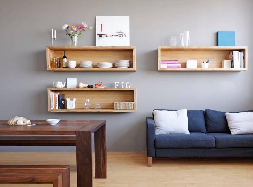 Правильно размещенные полочки могут стать прекрасной заменой для многих предметов мебели например, тяжелых верхних ящиков кухонного гарнитура. Подвесные модели делают пространство более эргономичным.