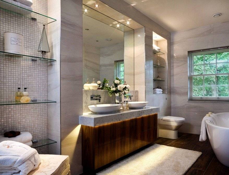 Если говорить о допустимой нагрузке, то тут тоже все просто. Широкие и глубокие полки готовы хранить объемные вещи, которые востребованы в быту, поэтому всегда должны быть в зоне доступа. Естественно, их делают из более грубых материалов. Стеклянные конструкции – больше декоративные решения. На них ничего громоздкого не поставишь и не потому, что не выдержат нагрузки, а потому что смотреться на этих нежных и сверкающих полочках груз будет просто нелепо.