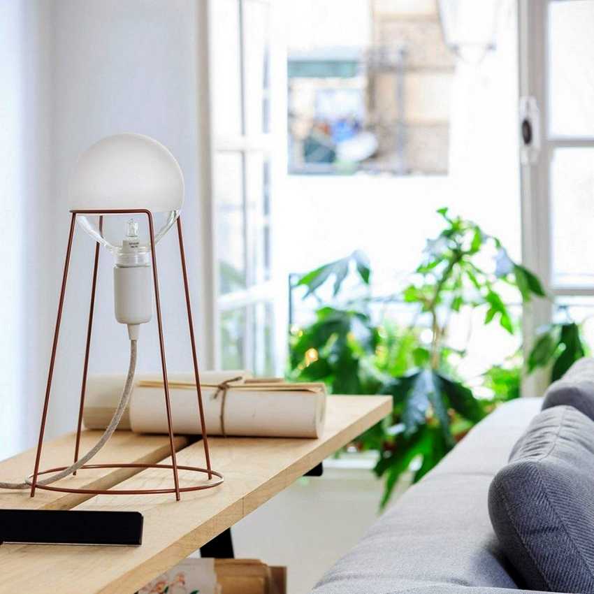 Этот интересный светильник больше похож на колбу эксцентричного химика, чем на настольную лампу. Великолепное дополнение к интерьеру в стиле лофт. Прибор оснащен стандартным цоколем Е14, в который можно ввернуть лампочку любого типа и стиля. Разработчик рекомендует филаментные светодиодные, но комплектует обычной накаливания. Впрочем, заменить ее на любую другую не составит труда – ведь светильник не имеет абажура. Такая лампа станет настоящим украшением как рабочего стола, так и гостиной или прихожей.