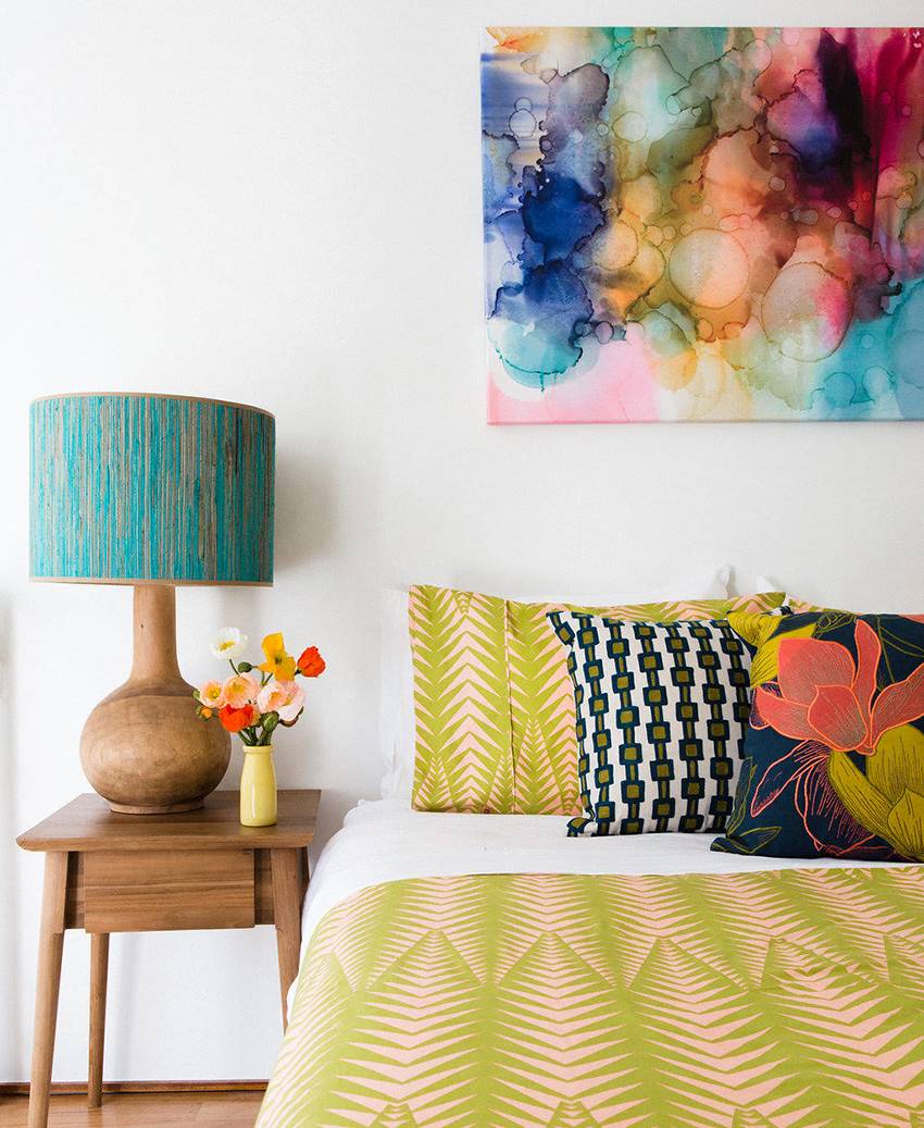 Оттенок абажура должен сочетаться с цветовым оформлением спальни