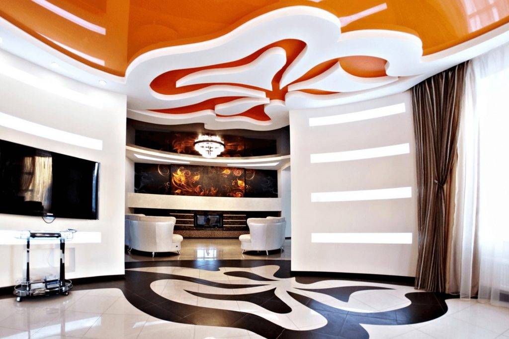 Одноуровневый или многоуровневый? Этот вопрос каждый решает под свое жилище. Два и более уровня, безусловно, украшают комнату, делают дизайн более интересным, разнообразным. Это прием можно использовать, если потолок в ломе высокий. Высота комнат — большое преимущество частных домов и хорошая возможность для дизайна. Два уровня потолка требуют расхода высоты в 15 см, каждый следующий заберет еще 10 см. зато все недостатки потолка и коммуникаций вы сможет скрыть самым лучшим образом.