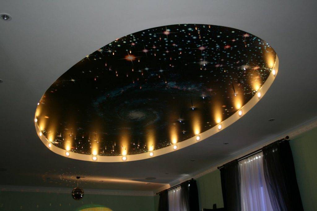 Если вам хочется чего-то более оригинального и интересного, то и в этом случае производители натяжных потолков постарались. Сегодня можно установить полотна со звездным небом над головой, или сделать фотопечать на материале того изображения, которое вы сами выберите.