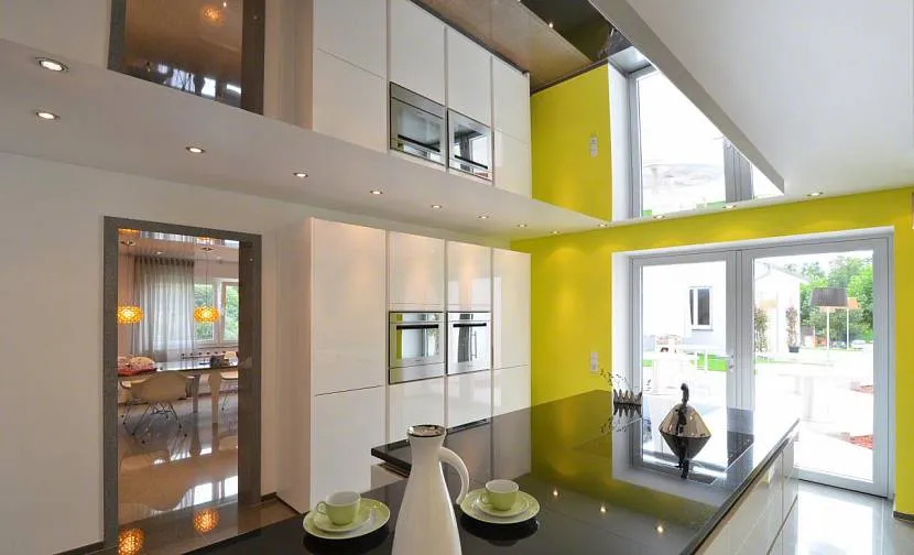 - потолок рекомендуют устанавливать в холлах, гостиных и детских. Для спальни этот цвет не подходит;